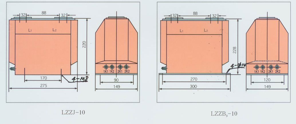 型 号 LZZJ-10, LZZB9 -10 ,LZZBJ9-10 额定一次电流 (A) 额定二次电流 (A) 频率 (Hz) 准确级组合 准确级及相应的额定输出(VA) 10P级准确限值系数 额定短时热电流kA( 有效值 )/1 秒 额定动稳定电流kA( 峰值) 5-100 5 50 0.2/0.2 0.2/0.5 0.2/10P 0.5/10P 10 10 15 15 150Iin 2.5Ith 150 22.5 45 200 24.5 45 300 45 90 400-600 15 15 20 800,1000 63 100