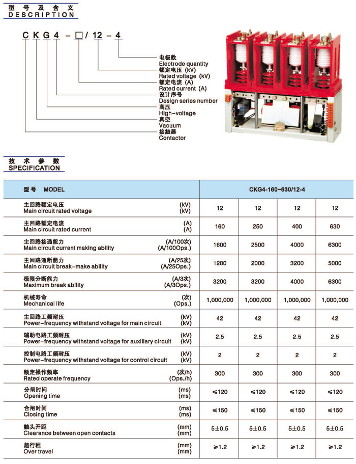 产品标题:CKG4-630/12-4,沪远,HY,CKG4系列交流真空接触器