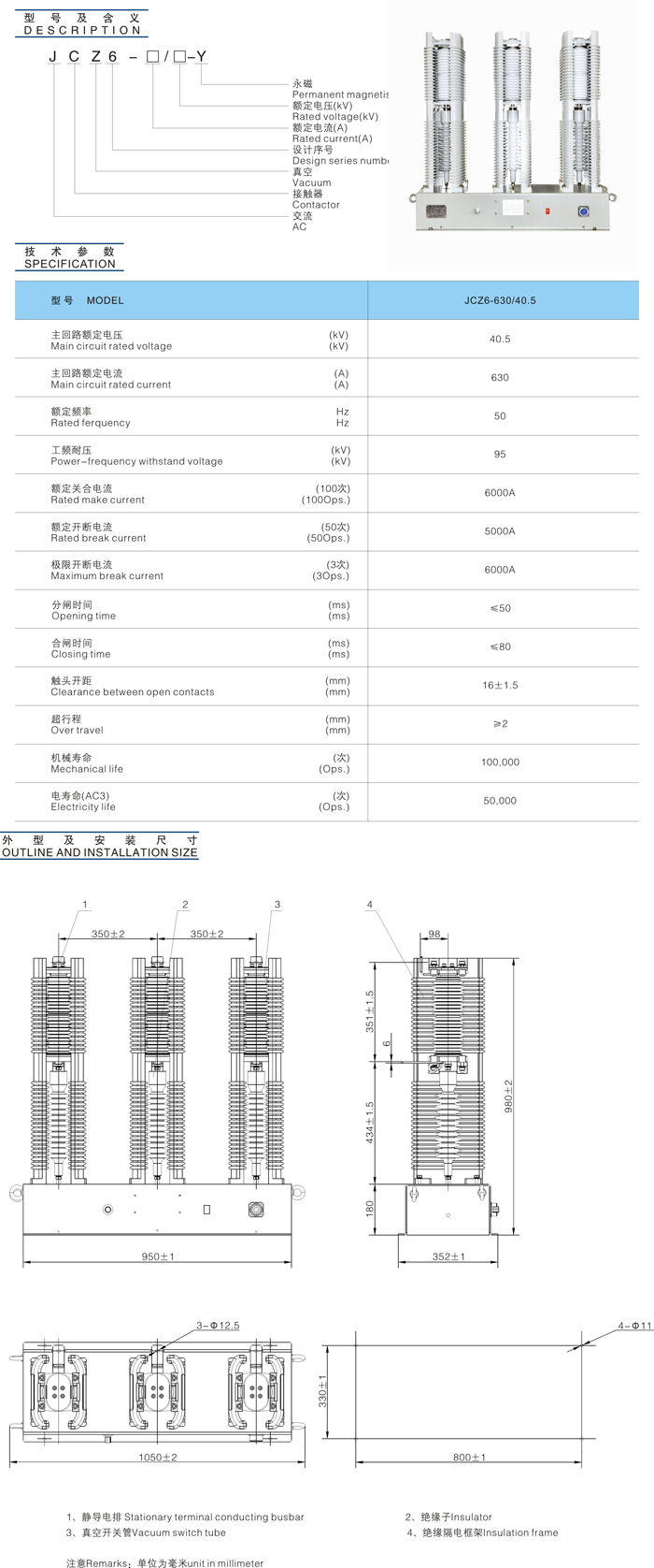 产品标题:JCZ6-400/40.5,沪远,HY,JCZ6系列真空接触器