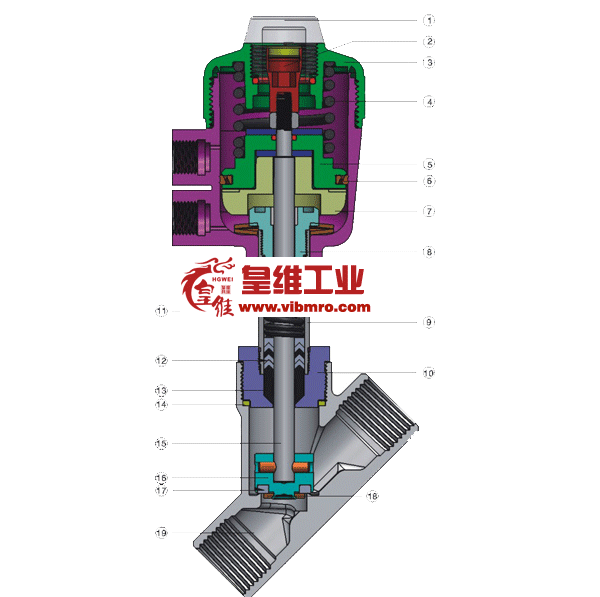 9连接管 Connecting pipe(CF8M/CF8) 19阀体 valve body(CF8M/CF8)