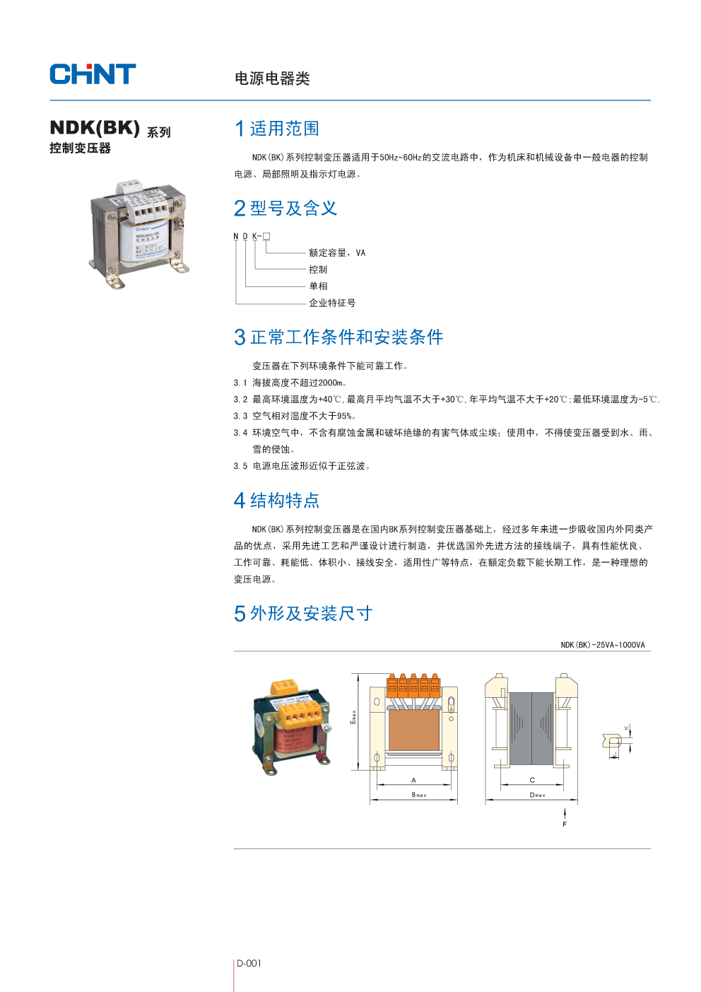 适用于50Hz~60Hz的交流电路中,作为机床和机械设备中一般电器的控制电源、局部照明及指示灯电源。 |