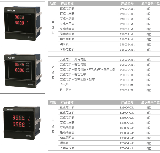 本系列仪表由800H单相仪表和800H三相仪表两大类构成,其中又按照电测功能的种类多少又各自可分为单功能电测仪表和多功能电测仪表两个子类。