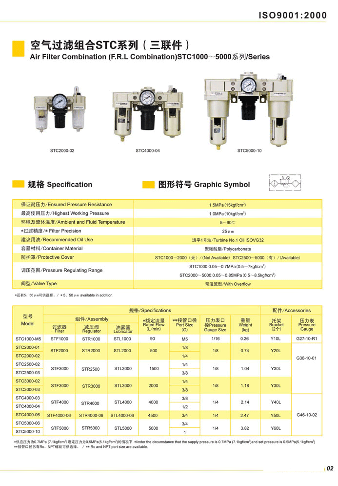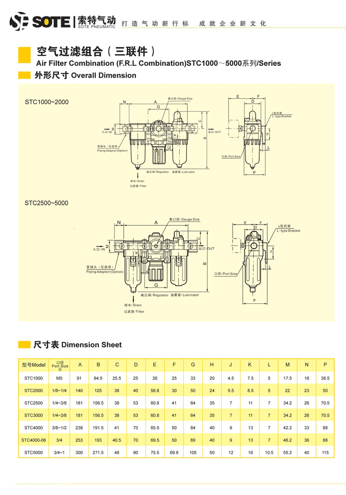 STC3000-02,STC2500-03,空气过滤组合(三联件)索特气动SOTE-中国气动元件销售中心